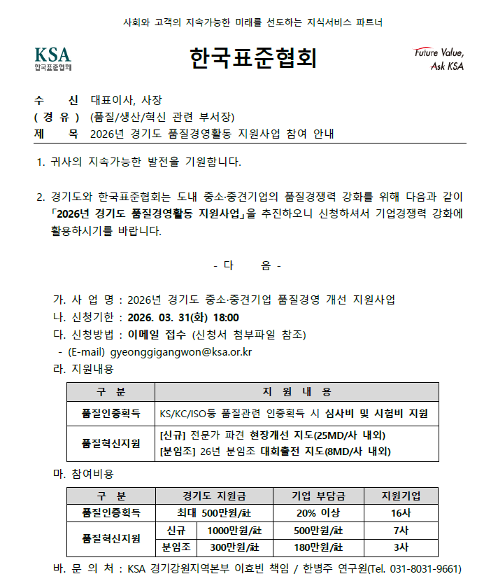 [경기] 2026년 경기도 품질경영활동 지원사업 참여기업 모집