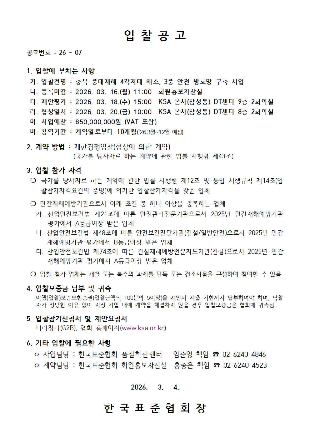 [입찰공고]충북 중대재해 4각지대 해소, 3중 안전 방호망 구축 사업