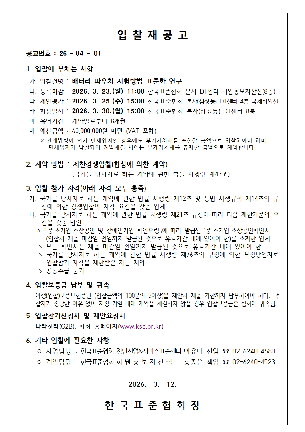 [입찰재공고]배터리 파우치 시험방법 표준화 연구